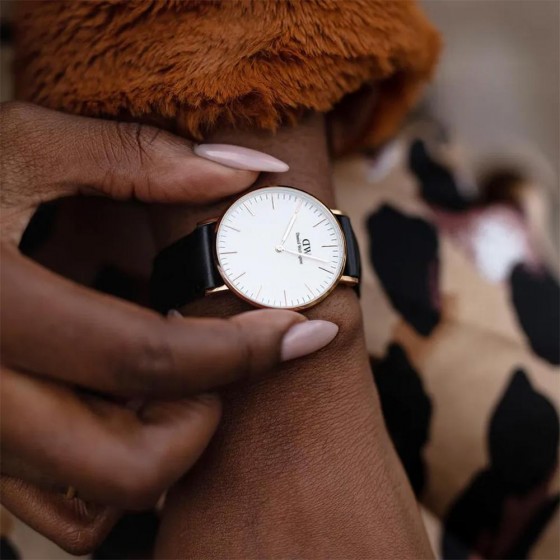 Daniel Wellington DW00100036 36mm 黑真皮皮革錶 DW錶