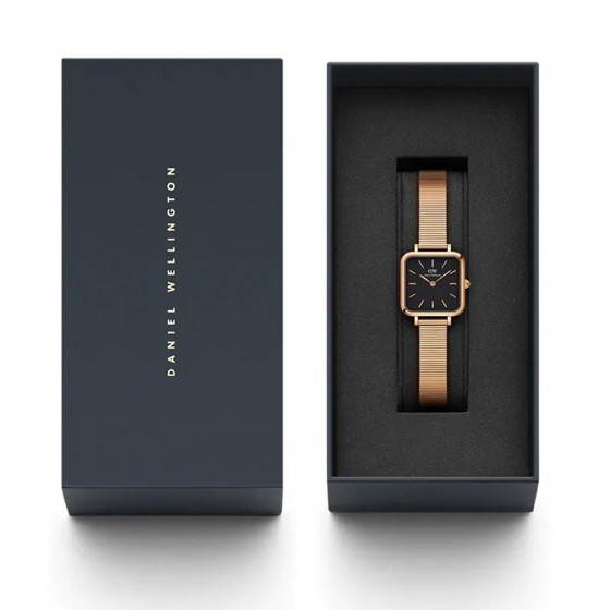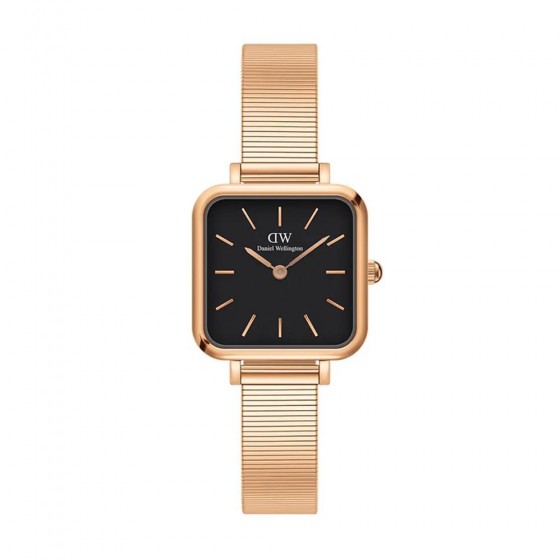 Quadro Studio 採用精緻小巧的黑色正方形錶盤,搭配時尚流線的鋼琴錶帶。 採用拋光不銹鋼製成,並提供精緻的玫瑰金鍍層,永恆的新復古時尚宣言。