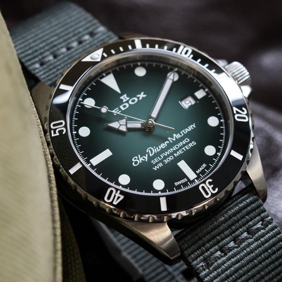 The SkyDiver Military 傘兵悍將 向傘兵及其在陸地,空中或海上可能面臨的極端條件致敬 並向EDOX 135年的歷史及傑出的'軍錶愛好者致意