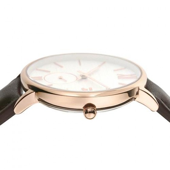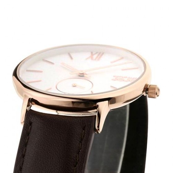 極簡優雅的設計風格,完美的呈現出時下流行的文青設計美學,精緻的面板材質加上圓型小秒針設計,會帶給大家幸福圓滿的愛情。