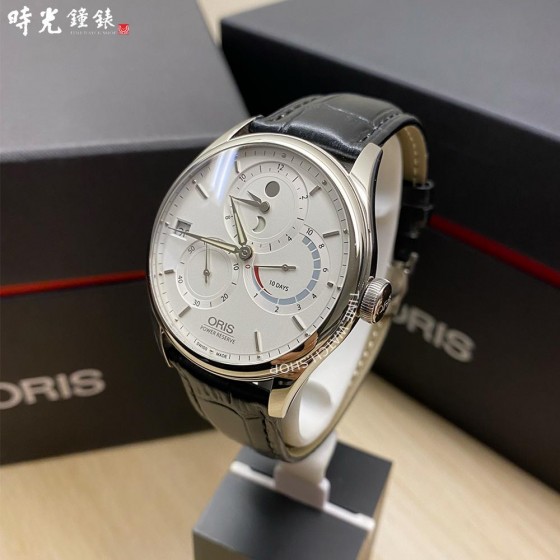 【機 芯】: 手上鍊 10日動力儲存,日期顯示,雙時區 Oris製造