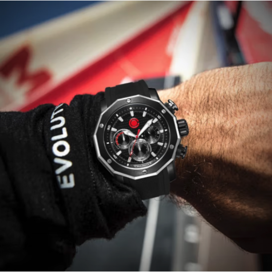 ELITES COLLECTION 阿裡斯系列:以六位超級英雄的團隊意識為核心,ELITES系列設計蘊含著正義聯盟的團隊隊形。統一的款式設計,內裡包含著各位英雄的專屬顏色及徽號,讓每一位成員在生活及作戰中都能得到團隊力量加持。腕表搭載計時馬錶石英機芯,48mm大直徑錶殼,巧妙展現了超級英雄們的豪邁一面。