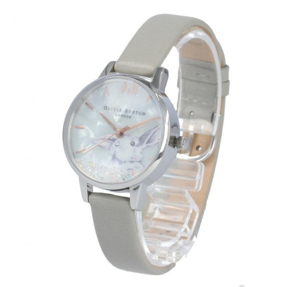 Olivia Burton OB16WL86 鋼殼兔子雙層白面滾珠鐵灰皮帶腕錶 Steel Grey 錶