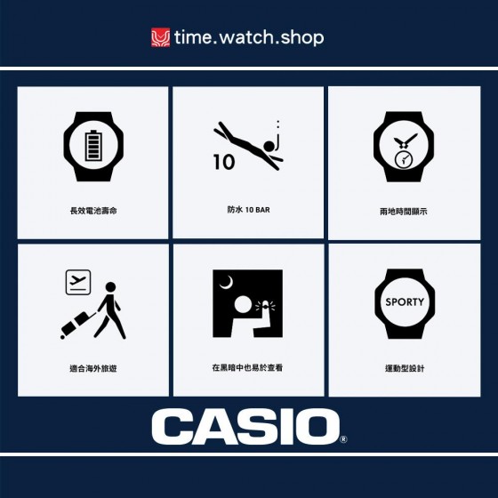 31個時區(48個城市+世界對應時間)、城市代碼顯示、日光節約時間(開/關)、本地時間/世界時間切換