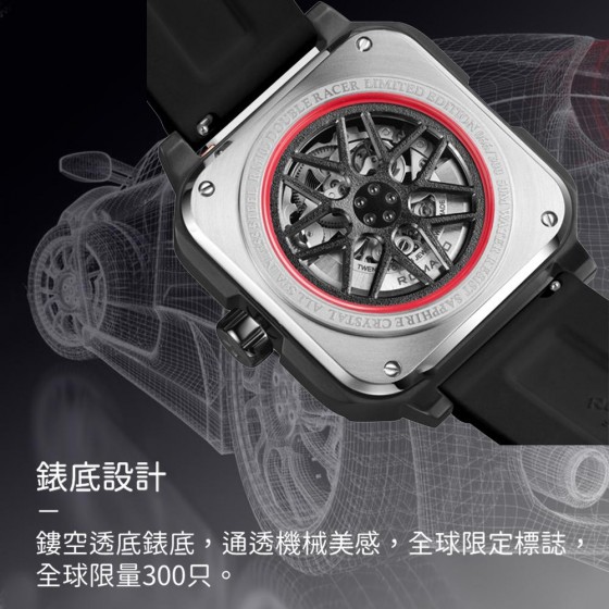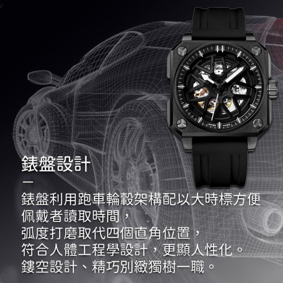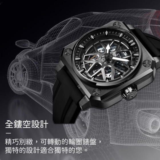 ROMAGO 雷米格 RM105-BK 極速鏤空自動腕錶 量款 機械錶男錶手錶生日禮物 輪圈 鏤空機械錶