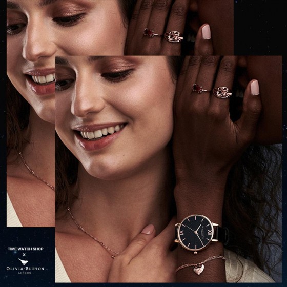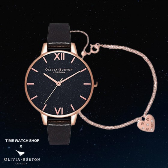 Olivia Burton 耶誕限定 ! 閃耀時尚氣息的耶誕限定套組,以閃亮的星燦黑腕錶搭配玫瑰金愛心手鍊,綻放甜美迷人的時尚氣息,是粉絲們必不容錯過的限量組合 !