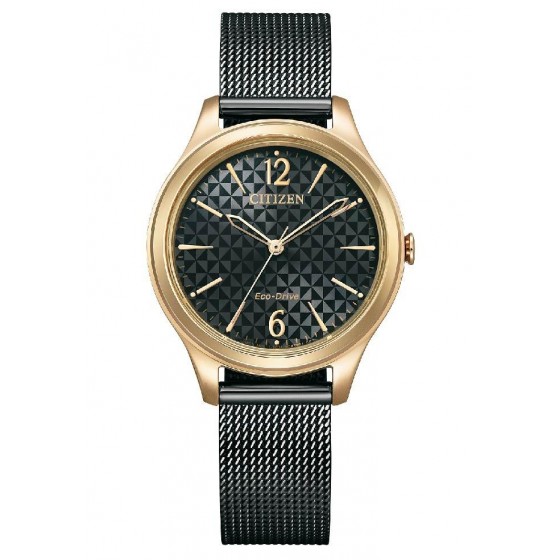 CITIZEN 星辰 EM0509-87E 法式菱格 LADY'S 米蘭帶腕錶 光動能 女錶