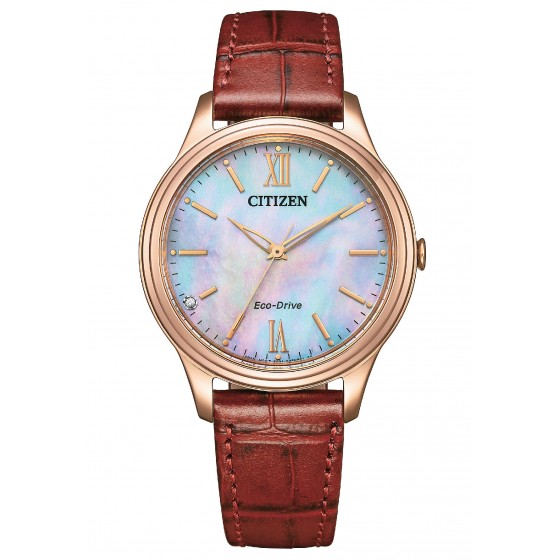 • CITIZEN 星辰 EM0419-11D 藍寶石玻璃 白蝶貝面板 經典大三針腕錶 光動能 女錶 小牛皮
