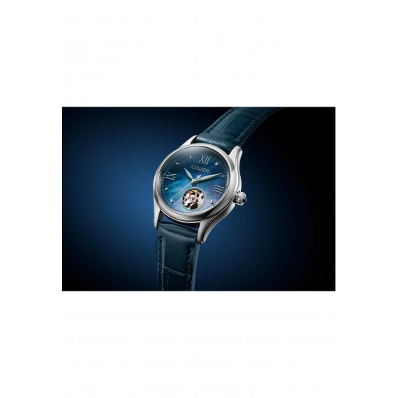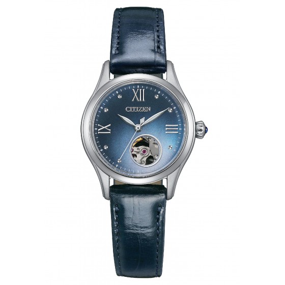 • CITIZEN 星辰 PR1041-18N 光動能 藍寶石玻璃 藍 小牛皮 優雅鏤空機械腕錶