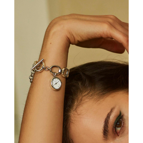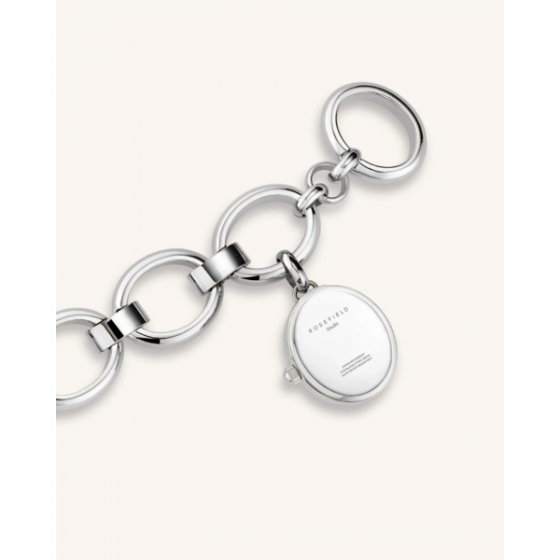Charm Chain,蛋型精緻錶盤搭配時尚的鐲鍊帶設計;更輕靈小巧的錶徑,鐲鍊採用 Rosefield 品牌漏刻的 T 型錶扣閉合,可鎖定在 O 形環結,充滿優雅細節的復古輪廓。腕錶亦是珠寶,將女性柔美與經典永恆的奢華概念,注入在阿姆斯特丹時髦女性美學設計之中,無論各種場合配戴皆可完美呈現。