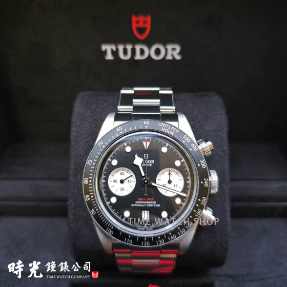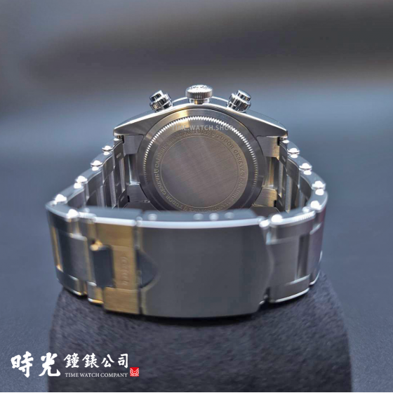 黑色配銀色計時盤,圓拱形 日曆窗位於6點鐘位置