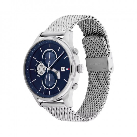 • 原廠保固兩年【高雄時光鐘錶】 Tommy Hilfiger 1710504 銀殼 藍面 三眼 鏤空 經典 腕錶