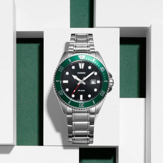這款手錶具備防水200米功能,單向旋轉錶圈和旋入式背蓋,適合任何您喜歡的海洋運動或水上活動。