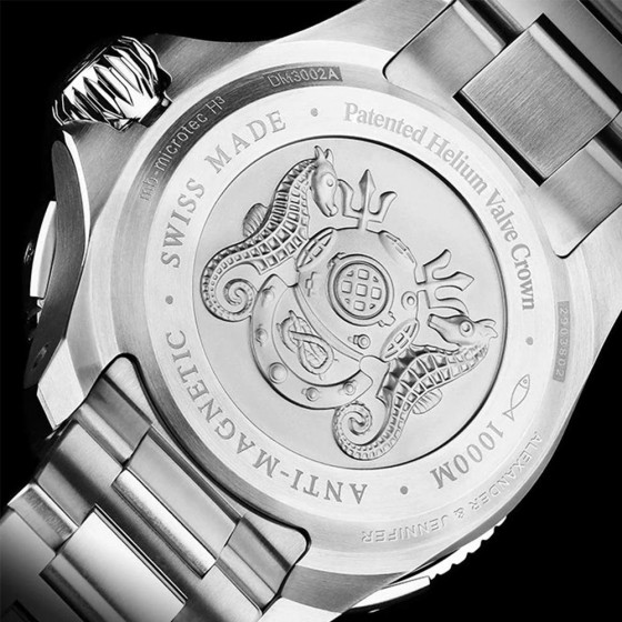 以整塊鈦金屬鑄造而成的錶殼,設計上並沒有傳 統可分開的獨立底蓋,讓防水性能得到更大的保 障。採用鈦金屬,它具有極強的抗腐蝕性,即使 長時間置身於高鹽分的海水裡,也不會有被腐蝕的疑慮。除此之外,鈦金屬錶 殼不但能堅固強悍,可抵抗日常生活中會遇到的意外撞擊,更手感輕盈,很適 合在運動時佩戴。