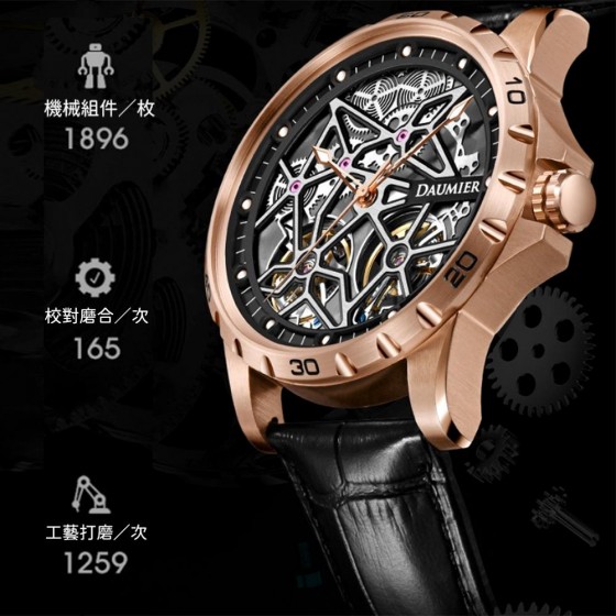 DAUMIER 瑞士丹瑪錶 DM8695-B3 超跑元素 雙飛輪機械錶