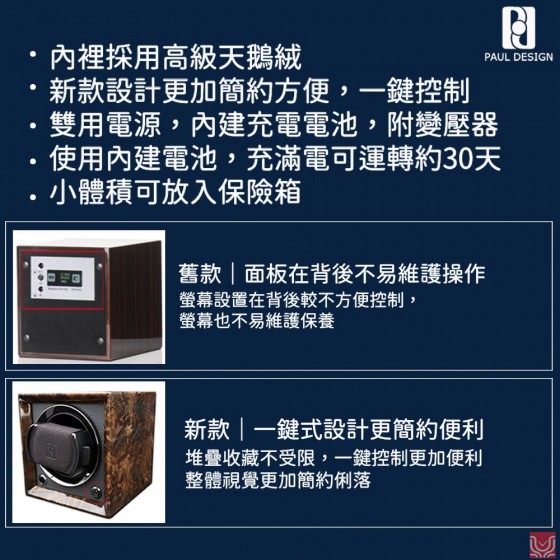 • 英國保羅設計 PAUL DESIGN PETITE 1 上鍊盒 贈原廠錶枕 自由堆疊 搖錶器 收藏盒