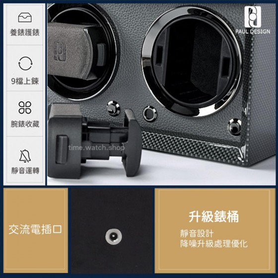 專業級別上鍊機芯,外表採用鋼琴烤漆,內裡搭配頂級皮革材質,兩種供電模式,錶架採用兩段式伸縮行錶架,產品採用按鈕是調節,小巧便攜,操作簡易。