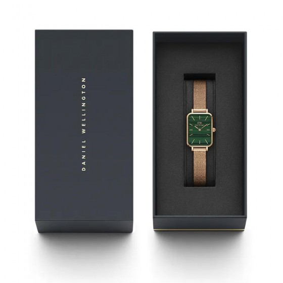 全新Quadro方錶系列是Daniel Wellington首次方形設計腕錶,錶身採用拋光不銹鋼製成,精緻的玫瑰金或是極光銀兩種錶身選擇。別緻的方形錶面有蛋殼白、經典黑和伯朗大道綠三種款式,搭配新型的麥穗式金屬編織錶帶或是細緻的壓邊皮革錶帶,讓妳的造型更為出眾,成為眾人的目光嬌點!
