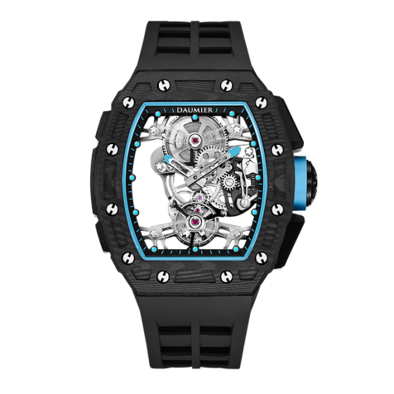 機芯資料及功能:高擺動頻率陀飛輪鏤空設計手動上發條機械機芯,陀飛輪透視劍形橋拱及六角型蜂巢式設計機芯支架,並獲得外觀設計專利