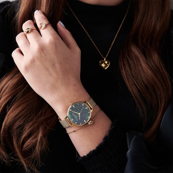 Olivia Burton Celestial 系列最新錶款,來自銀河系充滿奇幻感的夢幻星空 ! 搭配錶面浪漫的星體綴飾與銀河星系漸層色彩,營造出獨特閃耀的奢華質感。