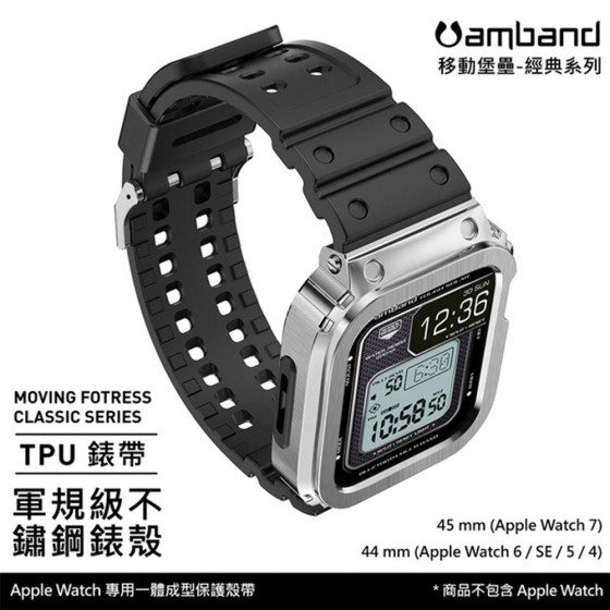 美國 Amband® 一體成型 Apple Watch 專用保護殼帶 The Coolest Apple Watch Case Over The World,防護再升級,軍規級不鏽鋼殼xTPU 錶帶,獨特 Casio 造型,讓你的 Apple Watch 也能秒變身為 G-SHOCK !! 來自美國的 Amband® 讓人們在享受未來科技的同時,並保持傳統風格和留住經典,專為 Apple Watch 打造一體成型的保護殼帶,追求高質性、機能性、規格最適性的設計核心,經典美學更是追求卓越的品牌靈魂。Amband® 不僅僅是一個品牌,為新科技增添人文溫度,賦予經典的懷舊靈魂,一同找回當代的熟悉配戴感。