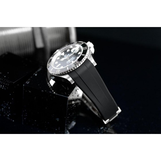 碳纖維繫列橡膠錶帶專為 41 毫米勞力士 Submariner 陶瓷錶殼和 Glidelock 表扣*(126610LN、124060LV、126613LB、126619LB)而設計。Rubber B 獨有的 STRENGTH INFUSION TECHNOLOGY 為您的 Rolex Glidelock Clasp 提供升級的支撐,以抵抗摩擦、重量和頻繁的微調。碳纖維分子在成型過程中融合在硫化橡膠中。結果:顯著提高了垂直和橫向應力抵抗力,同時保持佩戴者手腕周圍的柔軟、靈活舒適。