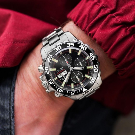 • 指針及錶面上共鑲嵌21支自體發光微型氣燈,方便夜間讀時