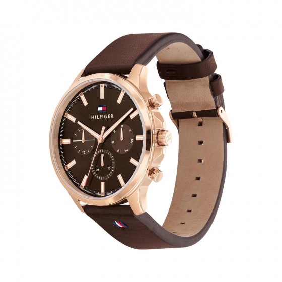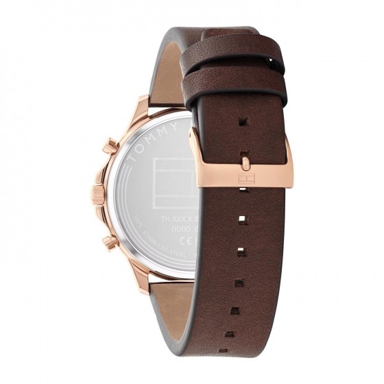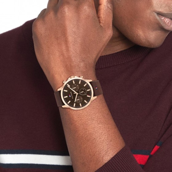 【高雄時光鐘錶】Tommy Hilfiger 1710497 玫金殼 復古棕 三眼 經典腕錶 真皮 腕錶